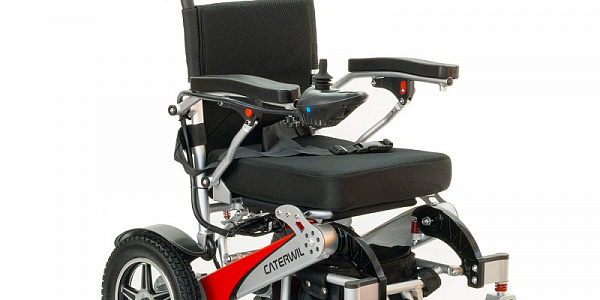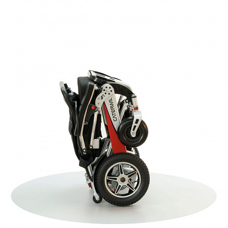 Caterwil Ultra Lite – это новый продукт на мировом и российском рынке. Основное преимущество данной электроколяски – это сверхлегкость и возможность складывания до размеров чемодана. Коляска оборудована 6-ю амортизаторами, литиевым аккумулятором, ремнем безопасности, пневматическими задними и мягкими цельнолитыми передними колесами из немаркой черной резины.